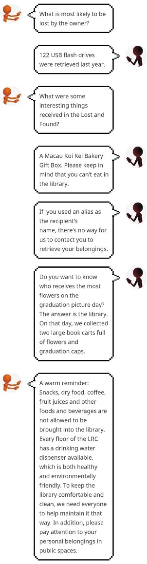 Last year, 474 items in the Lost and Found were returned to the readers in the library.