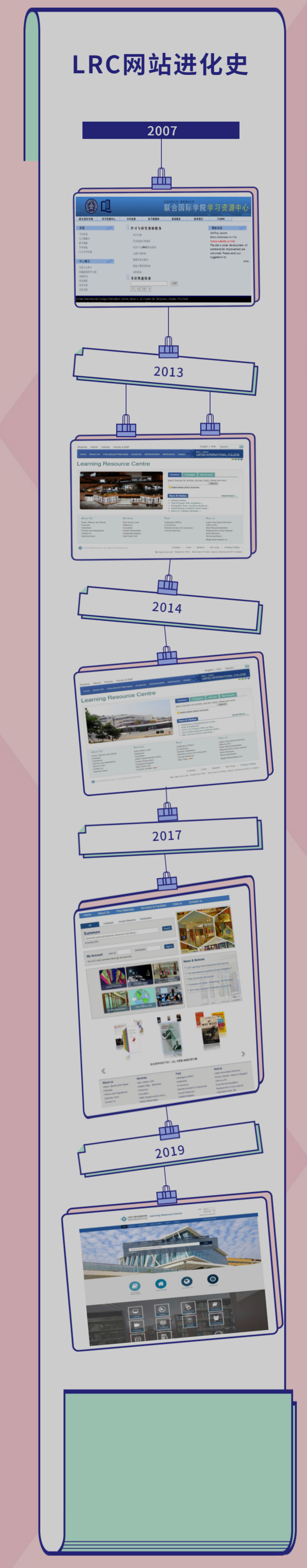 The Learning Resource Centre has witnessed the growth and progress of its website homepage. Since the initial implementation of the basic functions of the V.1 version, new sections have been continually added: Journal search, new functions in the menu bar, and the Book Display Widget. The 2019 version provides a better user experience by employing responsive web design so that it works beautifully on all devices, including computers, tablets and mobile phones. The new homepage is both functional and pleasing to the eye, allowing users to understand LRC’s resources and services clearly and quickly.