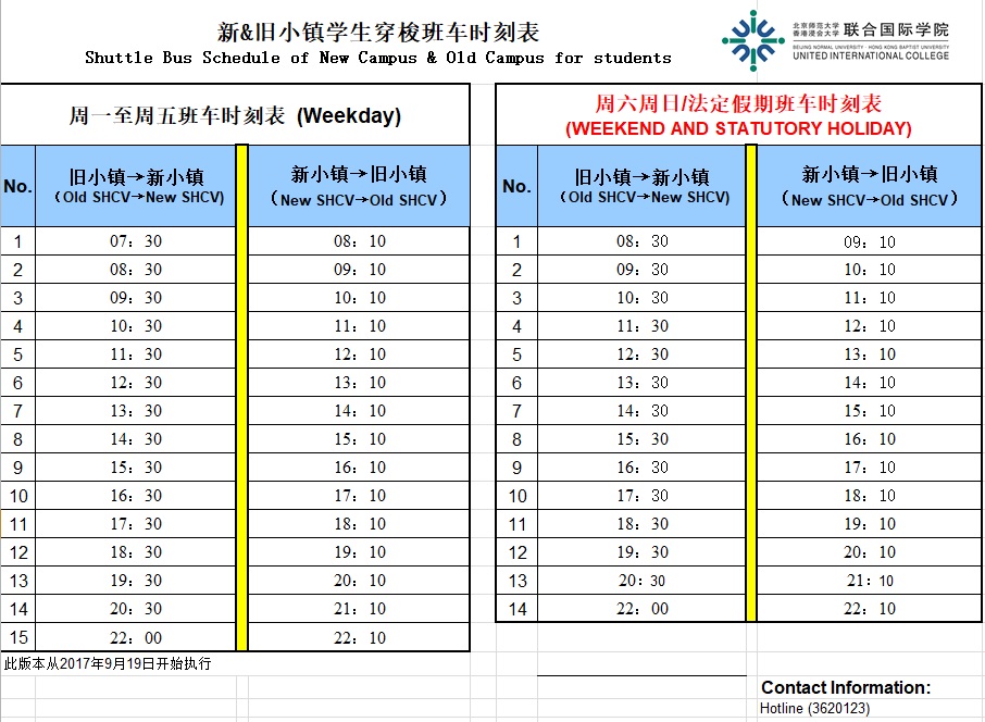 We have attached a copy of the shuttle bus service schedule for your information. Please note that this shuttle bus service will be terminated as of 22:00 on Wednesday January 3rd, 2018.