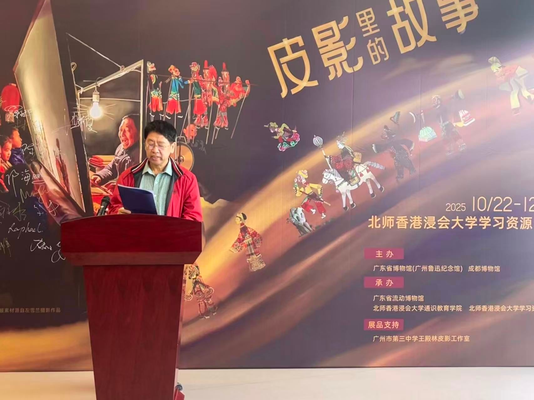 “Leather carves landscapes of grandeur, and light and shadows reflect ancient souls.” On the afternoon of October 22, 2025, the themed exhibition "Stories in Shadow Puppetry" was officially inaugurated at the BNBU Learning Resource Centre, and will remain on display until December 15, 2025. This unique showcase is sponsored by the Guangdong Museum and the Chengdu Museum, organized by the Guangdong Mobile Museum, BNBU's School of General Education, and the Learning Resource Centre, with support from Wang Dianlin Shadow Puppet Studio of Guangzhou No. 3 Middle School.