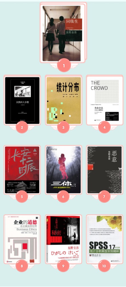 沉默的大多数(372 次),扶桑(322 次),美丽新世界(305 次),呼兰河传(280 次),巴黎圣母院(271 次)