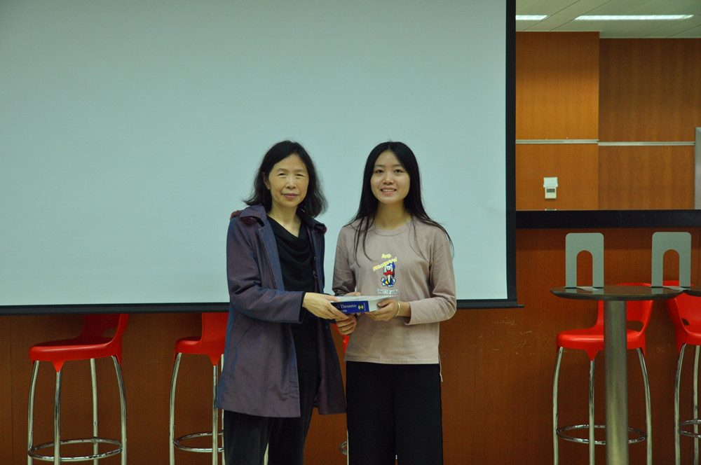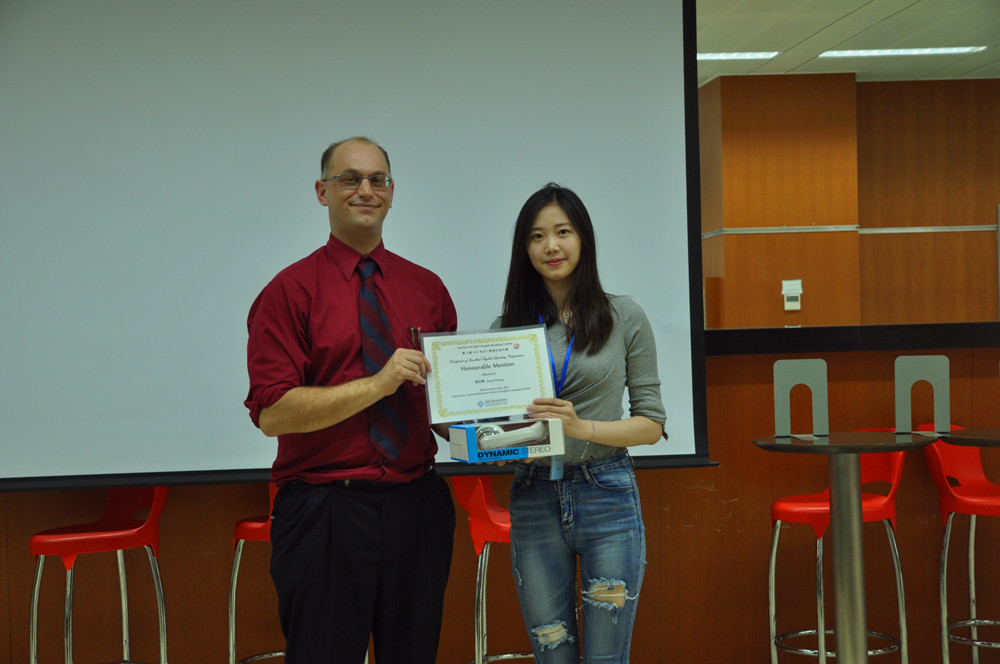 Prof Zee Sze Yong presents the first place to Zhang Xingquan