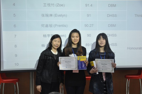 4 | Wang Yuezhu (王悦竹) | 91.4 | DBM | Finance | 4 | Third Place (Longman Phrasal Verbs Dictionary) |