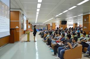 | 宣讲会吸引了众多学生 | 学生现场提问 |