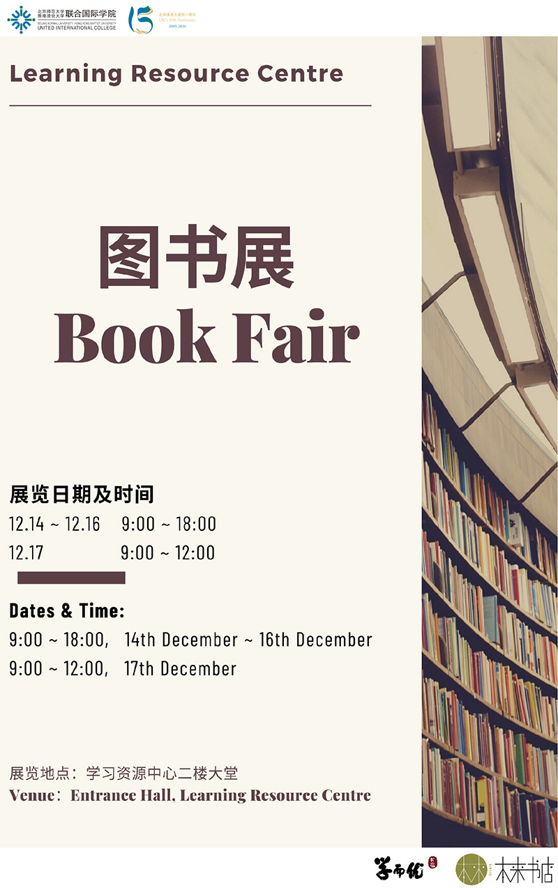 在十五周年校庆之际,学习资源中心连同广东学而优书店及深圳本来书店于12月14日-17日(周一至周四)举办为期三天半的图书展。本次书展将展出4000余册由国内知名出版社出版的中文图书,1000余册精选港台及外文原版图书,诚挚邀请各位师生前来挑选自己喜欢的图书纳入图书馆馆藏。